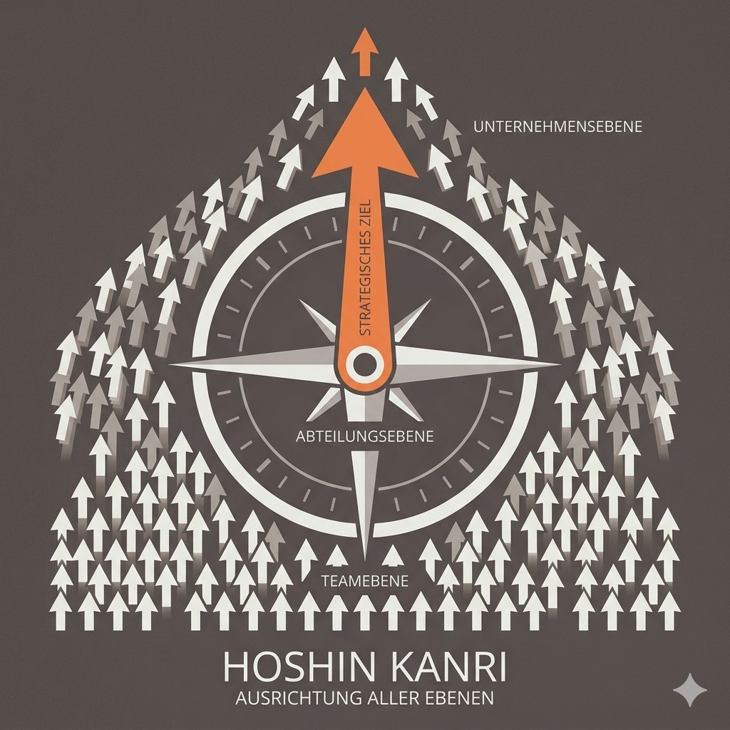 Hoshin Kanri kommt aus dem japanischen und wird in Japan seit vielen Jahren als Arbeits- und Führungsprozess eingesetzt. Der Hoshin Kanri wird auch Policy Deployment oder Zielentfaltungs-Prozess genannt und dient als „Lean-Management-Tool“. Der Begriff Hoshin Kanri bedeutet so viel wie Kompassnadel-Management und beschreibt eine strategische Vorgehensweise für die konkrete Definition eines Zielzustandes in der Zukunft.