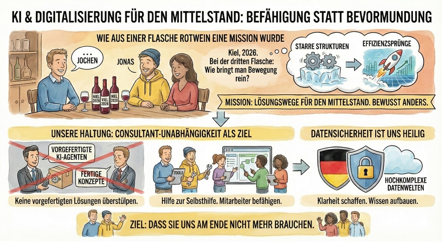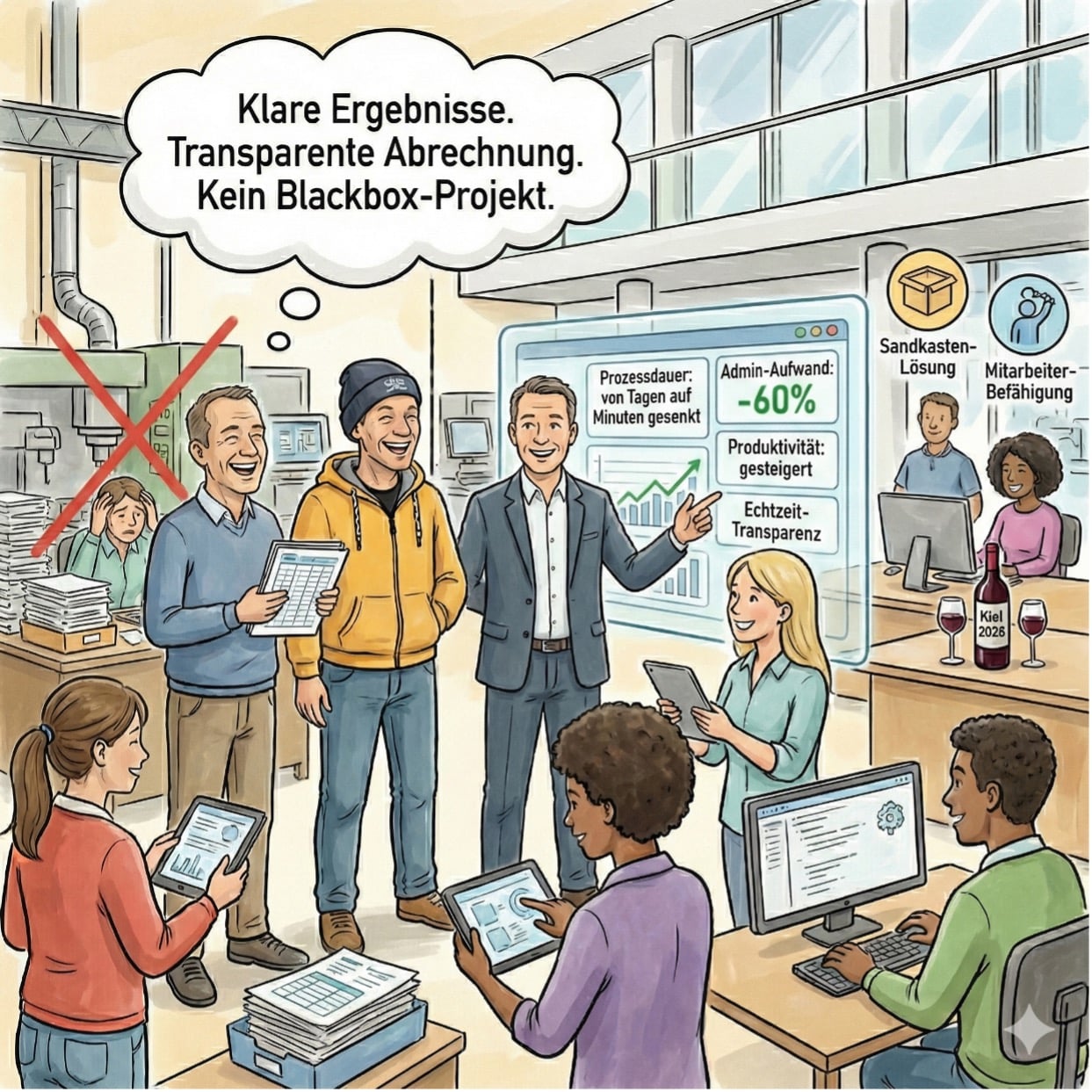 Praxisnahe KI- und Digitalisierungslösungen für den Mittelstand – mit Fokus auf Befähigung von Teams, messbare Effizienz und vollständige Unabhängigkeit von externen Beratern.