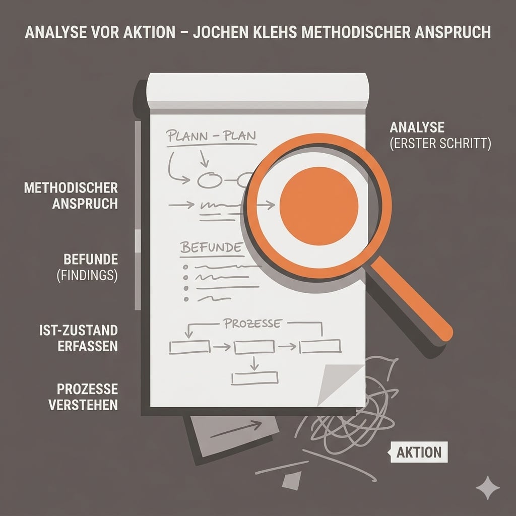 Dabei ist es egal, ob es die Arbeits- oder die Führungsprozesse sind. In den Analysen werden diese Prozesse so genau wie notwendig analysiert und überprüft.