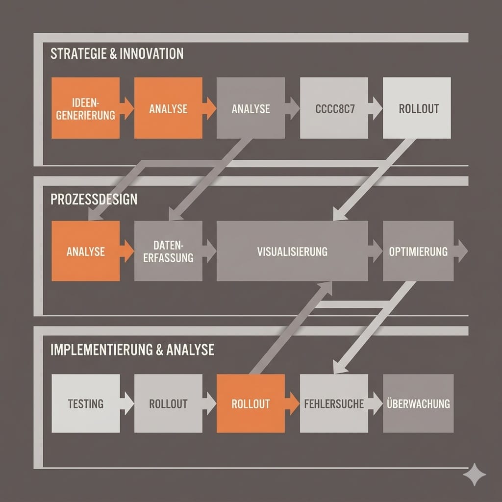 Ein klarer 8-Schritte-Prozess – von der Identifikation und Aufnahme bis zur Wirksamkeitsprüfung am lebenden Prozess. Faktenbasiert, messbar und konsequent am Projektziel ausgerichtet.